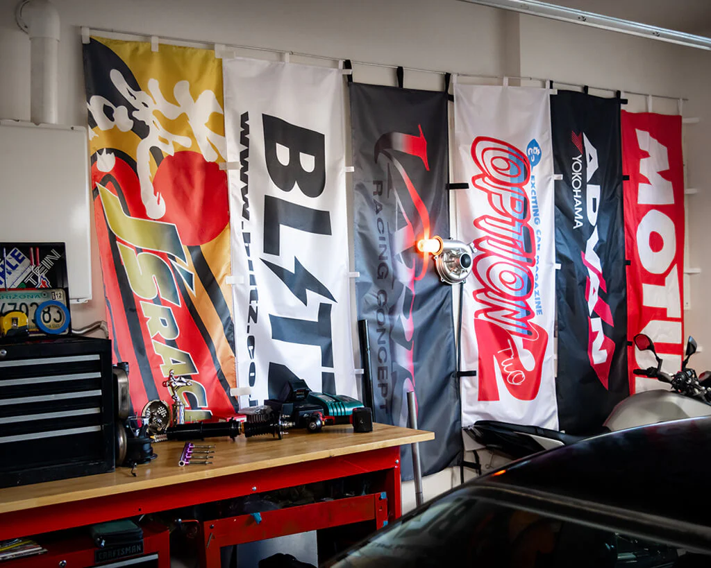 Explore our vault or archived Japanese Domestic Market goods from Aftermarket Tuning Brand decal stickers to sunstrips that you can customise to your style, or treat your garage and / or workshop to a fresh lick of paint with our range of premium-grade Garage Workshop Banners.